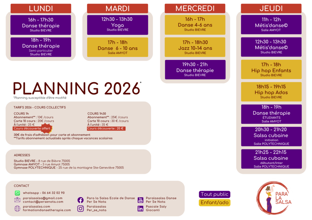 Des cours de danse thérapie adultes, de salsa cubaine et métis’danse pour adulte et sénior, des cours de créative danse et danse thérapie pour les enfants
